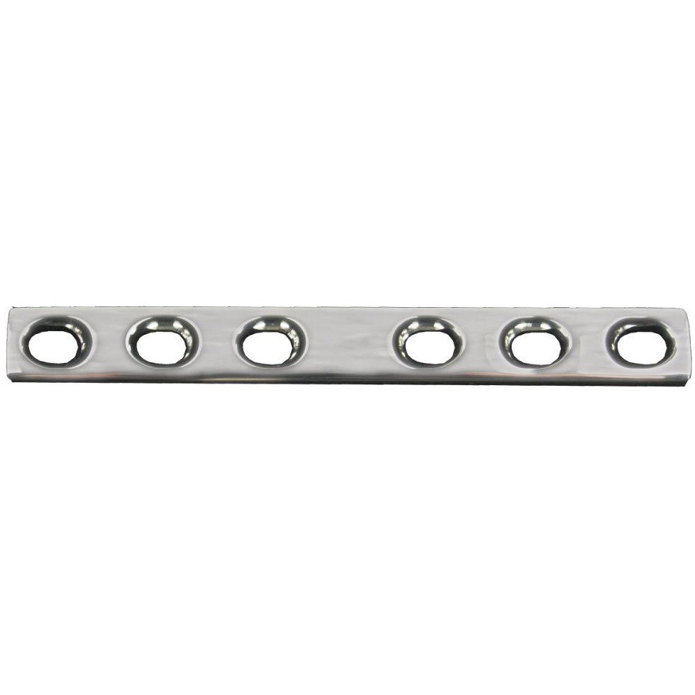 The dynamic compression plate has been the standard setting implant for human and veterinary orthopaedics for decades. It continues to be our most popular plate style. The design of the plate holes allows for a large range of screw insertion angles compared to round holes. Fracture compression permits primary bone healing with minimum callus. Placing a screw at the end of a plate hole furthest from the fracture will compress the fractured bone ends together as the screw is tightened. Compression plates can also be used in neutralisation and bridging modes. Care needs to be taken in bridging mode as the plate is subject to greater bending forces that can cause premature failure.