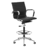 Executive high back chair made with black bonded leather comes with torsion knee tilt mechanism. Chrome spider base, chrome arms with leather cover.